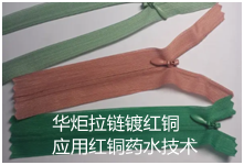 现行的拉链红铜工艺都是用甲醛和硫酸铜的还原反应来进行化学沉铜,其中甲醛挥发性强,有毒性,有气味,对生产现场影响大。而且由于甲醛和硫酸铜的反应是自发进行,且对温度敏感,所以条件很难控制,生产出的产品色差严重。 华炬新产品研究所技术咨询委员会科研人员现推荐一项拉链镀红铜应用红铜药水技术配方,该技术产品的使用整个流程中不需要使用强挥发性并且有毒的甲醛,有利于环保和操作工人的健康;红铜药水稳定性强,对温度不敏感,生产出的拉链镀铜均匀,良品率高,产品品质稳定现将该拉链镀红铜应用红铜药水技术配方介绍如下:(711611 473365)