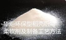 华炬新产品研究所技术咨询委员会科研人员现推荐一项一种环保型稻壳织物柔软剂及制备工艺方法,该技术的有益效果是:(1)该技术制得的织物柔软剂生物降解性好,使用后不会对环境造成污染,且使用本发明柔软剂处理后的织物弹性好、不易出现变形、褶皱现象;(2)该技术制得的织物柔软剂亲水效果好,适用于棉、毛、真丝、竹纤维等多种面料织物,处理后的织物手感柔软、光滑耐磨,耐洗性好,无泛黄现象,具有较好的使用效果,现将该一种环保型稻壳织物柔软剂及制备工艺方法及技术方案及实施例介绍如下供研究交流参考:(711511 435674)