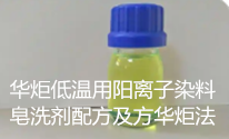 华炬新产品研究所技术咨询委员会科研人员现推荐一项一种低温用阳离子染料用皂洗剂配方及方法,该技术低温皂洗剂中含有马丙共聚物,马丙共聚物能与染料结合并防止沾色,洗下来的浮色能够被马丙共聚物分散在水中,不再沾到织物上,具有优良的皂洗性能,同时还具有阻垢作用;本发明低温皂洗剂中添加了乙二胺二邻羟苯基大乙酸钠,具有优良的螯合能力,防止染料与钙镁离子结合沉积在织物上,具有良好的抗硬水性能,该技术在皂洗剂中加入了一种含聚氧乙烯醚链季铵盐阳离子表面活性剂,该表面活性剂与洗脱下来的阴离子染料发生作用,并均匀的分散在皂洗液中,大大降低甚至防止了浮色反沾纤维的能力,因而具有很好的保护白地、防止浮色反沾纤维,提高纤维色泽鲜艳度的效果。现将该一种低温用阳离子染料用皂洗剂配方及方法及技术方案及实施例介绍如下供研究交流参考:(711511 451515)