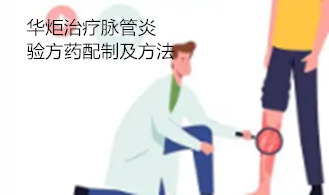 脉管炎吃药吊针疗效比较慢,严重者需要做手术,给患者带来很多痛苦和副作用。华炬科技新产品研究所技术咨询委员会科研人员现推荐一项一种治疗脉管炎验方药配制及方法,该技术的目的是克服现有医药的不足,提供一种疗效好,见效快,成本低的一种外敷药及其配制方法,该技术的有益效果是:1.疗效好,见效快,无副作用;2.制做简单,成本低,验方由四味中药组成,应用方法为外敷,现将该一种治疗脉管炎验方药配制及方法及技术方案及实施例介绍如下供研究交流参考:(411211 545318)