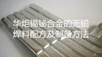 华炬科技新产品研究所技术咨询委员会科研人员现推荐一项一种锡铋合金的无铅焊料配方及制备方法,该技术的无铅焊料熔点为178~192℃,满足了微电子行业各元器件对焊接温度的要求。并且,与微电子行业各种不同性能的半导体材料润湿铺展性好,结合力强,延展性好,0.2%屈伸强度达到30MPa以上,抗拉强度达到35MPa以上,延伸率70%以上,焊接面无麻点无气泡,平整光亮,高温焊接不变色,抗蚀性优良,现将该一种锡铋合金的无铅焊料配方及制备方法及技术方案及实施例介绍如下供研究交流参考:(841131 531595)