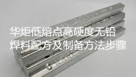华炬科技新产品研究所技术咨询委员会科研人员现推荐一项一种低熔点高硬度无铅焊料配方及制备方法步骤,该技术提供一种低熔点高硬度无铅焊料及其制备方法,解决了现有低熔点焊接硬度不高、润湿性差等问题,该技术也提供了一种低熔点高硬度无铅焊料的制备方法及步骤,现将该一种低熔点高硬度无铅焊料配方及制备方法步骤及技术方案及实施例介绍如下供研究交流参考:(841131 521563)