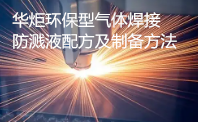 华炬科技新产品研究所技术咨询委员会科研人员现推荐一项一种环保型气体焊接防溅液配方及制备方法,该技术防溅液是一种浅黄色、透明的液体,无味、无害,对人体和环境安全的绿色环保型水基类产品,PH值为8~9,焊接完成后该技术的防溅液完全自然挥发,无残留,对喷漆和防锈处理等无任何影响,保证了金属表面平整如初。每公斤该技术的防溅液可涂抹约40~50平方米金属表面。同时,可使飞溅物减少,保护工人不受焊渣伤害,减少虚焊和漏焊。免除了焊接后打磨等工序,降低了工人的劳动强度,避免了粉尘伤害,以及打磨耗材成本,使用后产出成本比使用前工人打磨成本降低约3~5倍。该技术防溅液可以应用的气体焊接种类为二氧化碳气体保护焊,并适用于不锈钢、碳钢等各种金属表面的焊接,现将该一种环保型气体焊接防溅液配方及制备方法及技术方案及实施例介绍如下供研究交流参考:(841131 512731)