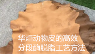 华炬科技新产品研究所技术咨询委员会科研人员现推荐一项一种动物皮的高效分段酶脱脂工艺方法,该技术的目的是针对现有酶脱脂技术的不足而提供一种基于脂肪酶对动物皮内油脂高效水解作用的高效脱脂方法,以解决传统的表面活性剂或有机溶剂脱脂方法污染大、皂化法和单一的脂肪酶或脂肪酶与表面活性剂结合脱脂方法的脱脂效率不高的缺陷,实现无溶剂和外加表面活性剂的动物皮清洁、高效脱脂,该技术的基本特点是将酶对油脂催化水解分阶段进行,即酶作用初期,在脂肪酶的最适pH值下催化动物皮内油脂水解;在反应中、后期加入碱和脂肪酸分散剂,使脂肪酸原位形成可溶性皂,进入水相,实现产物脂肪酸与油脂分子及时分离,消除脂肪酸的抑制作用,有效提高油脂水解效率和去除效果,现将该一种动物皮的高效分段酶脱脂工艺方法及技术方案及实施例介绍如下供研究交流参考:(311211 348487)