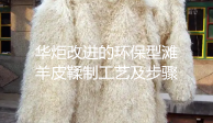 华炬科技新产品研究所技术咨询委员会科研人员现推荐一项一种改进的环保型滩羊皮鞣制工艺及步骤,该技术的有益效果是:一方面,该技术中利用少许的铝盐、锌盐、无铬鞣剂TWT与四羟基硫酸鳞、丙烯酸树脂、霉菌脂肪酶以及其他辅助鞣剂共同构成多滩羊皮进行鞣制的复合鞣剂,保证鞣制处理后的滩羊皮皮毛光亮洁白,板皮丰满、轻薄柔软,抗氧化、还原、耐酸碱、防腐、收缩温度、染色等性能好。复合鞣剂的使用可避免单纯的铬鞣法、铝鞣法所存在的废液无法有效处理、污染环境、鞣剂与胶原纤维结合牢固,产生掉毛等问题。另一方面,该技术通过浸水、刮肉以及称量的前期处理,为后续的脱脂和鞣制工艺提供了较好的方便,利于提高滩羊皮的鞣制生产效率,同时也利于滩羊皮的形貌保持;通过组织固定工艺能够有效保证滩羊皮内部的胶原蛋白不易在脱脂环节流失,从而利于保持滩羊皮的内部组织稳定,从而对滩羊皮的整体强度和质量保证具有较好的促进效果,使滩羊皮的形貌和弹性保持更加完好,进而利于滩羊皮制品的外形美观和质量保证。再一方面,该技术的漂洗和后处理干燥工艺,能够使滩羊皮的污渍去除效率更高,尤其是皂角熬制液的加入使用,由于皂角熬制液本身具有较好的漂洗能力,属于环保自然漂洗溶液,通过皂角熬制液的使用能够使漂洗溶液的整体漂洗性能得到保证的同时,还能够有效减少化学漂洗试剂的使用,进而利于降低环境污染,起到良好的环保效果,进而避免了过多化学试剂使用造成的废液污染,也降低了废液处理成本。最后,该技术环保效果好,制作的滩羊皮皮毛光亮洁白,板皮丰满、轻薄柔软,抗氧化、还原、耐酸碱、防腐、收缩温度、染色等性能好,复合鞣剂的使用可避免单纯的铬鞣法、铝鞣法所存在的废液无法有效处理、污染环境、鞣剂与胶原纤维结合牢固,产生掉毛等问题具有较好的实用和推广价值,现将该一种改进的环保型滩羊皮鞣制工艺及步骤及技术方案及实施例介绍如下供研究交流参考:(311271 242491)