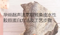 华炬科技新产品研究所技术咨询委员会科研人员现推荐一项一种超声法萃取鳕鱼皮水性胶原蛋白方法及工艺步骤,该技术的积极效果为:1、采用超声波萃取鳕鱼皮水性胶原蛋白萃取率比其他方法提高30%,节省萃取时间3倍能够实现产业化。2、采用超声波萃取使鳕鱼皮组织内胶原蛋白均匀释放出来,且能够稳定在液态中,形成水性胶原蛋白。3、该技术利用温差进行两极单项浓缩,有效的控制水性胶原蛋白的粘度和质量。4、该技术利用梯度冷却,防止水性胶原蛋白分子链的断裂,降低亲水性及活性质量稳定。5、该技术的水性胶原蛋白适应于医药品、化妆品、保健品、营养食品,更能有效的拓展应用空间,现将该一种超声法萃取鳕鱼皮水性胶原蛋白方法及工艺步骤及技术方案及实施例介绍如下供研究交流参考:(341211 323681)