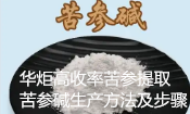 华炬科技新产品研究所技术咨询委员会科研人员现推荐一项一种高收率苦参提取苦参碱生产方法及步骤,该技术的有益效果是:(1) 该技术采用了乙醇回流提取,缩短了提取时间,提高了收率;(2) 该技术用焦亚硫酸钠作还原剂进行强烈还原,将氧化苦参碱还原成结构相似的槐定碱,不仅提高了苦参碱的收率,还降低了后续分离苦参碱的难度,避免了有机溶剂的使用,简化了分离过程,具有收率高、纯度好、生产周期短、工艺过程简单、操作更加安全的优点 (3) 该技术不仅能将生物碱的氧化态还原成还原态,还能将与苦参碱结构相似的生物碱(如:槐定碱)还原成苦参碱,现将该一种高收率苦参提取苦参碱生产方法及步骤及技术方案及实施例介绍如下供研究交流参考:(441221 636529)