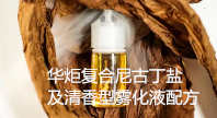 华炬科技新产品研究所技术咨询委员会科研人员现推荐一项一种复合尼古丁盐及清香型雾化液配方,该技术有益效果: (1) 该技术的复合尼古丁盐,通过乳酸、乙酰丙酸、丙酸和尼古丁的相互作用,提高尼古丁的可吸收性,减轻尼古丁的刺激性,并且提高与香料相容性、协调性,能够用于制备雾化液。且复合尼古丁盐的制备方法简单、方便、安全,可大规模生产(2) 该技术的清香型雾化液,包含复合尼古丁盐、甘油、丙二醇和香料基液,其中,复合尼古丁盐能够与香料基液相容,使得制得的清香型雾化液雾化后的香气宜人、持久,不含杂味或者杂味少;低含量的复合尼古丁盐即可满足戒烟人群的解瘾需要;同时雾化液雾化后的气体对人体的刺激性小,能够满足消费者的健康要求,现将该一种复合尼古丁盐及清香型雾化液配方及技术方案及实施例介绍如下供研究交流参考:(211241 335411)