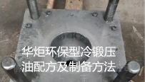 华炬科技新产品研究所技术咨询委员会科研人员现推荐一项一种环保型冷锻压油配方及制备方法,该技术的有益效果在于,该技术采用植物油以及环保型溶剂油作为基础油,避免了现有技术中常用的有毒易挥发有机溶剂的使用,减小了对人体以及环境的危害,而通过润滑剂、合成酯以及极压剂的复配作用,可使制得的冷锻压油具有良好的流动性、极压性以及润滑性,提高工件,尤其是铝材工件冷锻压的工作效率以及锻压效果,该技术制备方法制得的冷锻压油,其PB值至少为76kg,PD值至少为400kg,40℃的运动粘度为1.3-2.5mm2/s,密度为0.88-0.91g/cm3,具有良好的润滑性以及流动性,现将该一种环保型冷锻压油配方及制备方法及技术方案及实施例介绍如下供研究交流参考:(841131 123563)