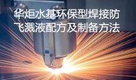 华炬科技新产品研究所技术咨询委员会科研人员现推荐一项一种水基环保型焊接防飞溅液配方及制备方法,该技术的有益效果是:该技术的配方具有较为优秀的热稳定性,避免了涂膜受热发生脱膜的现象;配方均属于生物基绿色资源,具有较好的环境友好性,通过改良配方内组分的种类和含量,具有很好的水溶性,涂膜具有一定的韧性,避免受外界物理作用时发生破裂,同时满足了涂膜易于洗涤的要求,而且本配方具有优良缓蚀性能和抑菌能力,现将该一种水基环保型焊接防飞溅液配方及制备方法及技术方案及实施例介绍如下供研究交流参考:(841131 512354)