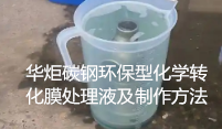 华炬科技新产品研究所技术咨询委员会科研人员现推荐一项一种碳钢环保型化学转化膜处理液及制作方法,该技术的有益效果是:该技术以有机酸为主成膜物质,以钼酸钠为转化处理的促进剂,是一种无毒、无污染、能耗低、可在低温下进行化学转化膜处理的环保型化学转化膜处理液。传统的化学转化膜处理液,多含有有毒有害物质,并且所需温度高,能耗大,污染严重;根据该技术所述化学转化膜处理液得到的转化膜,通过用硫酸铜点滴及盐水浸泡方式对膜层的耐蚀性进行测试,及用退膜法测定转化膜的膜重,结果表明,碳钢按该技术所述转化膜处理液及工艺处理后,所得转化膜膜重0.57g/㎡,耐硫酸铜点滴时间达72s,耐盐水浸泡时间超过60min,符合国家标准,现将该一种碳钢环保型化学转化膜处理液及制作方法及技术方案及实施例介绍如下供研究交流参考:(841141 221629)