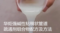 华炬科技新产品研究所技术咨询委员会科研人员现推荐一项一种强碱性粘稠状管道疏通剂组合物配方及方法,该技术方案的有益效果:该技术技术方案是在强碱溶液体系中添加增溶剂二甲苯磺酸钠或异苯丙磺酸钠,再添加耐强碱的高效缓蚀剂和次氯酸钠稳定剂。通过添加增溶剂后管道疏通剂体系中氢氧化钠和表面活性剂含量都可大幅提高,氢氧化钠添加量最高可达20%以上,同时也可提高氧化胺的添加量,氧化胺在本配方体系中有增稠及润湿、渗透作用,可极大提高管道疏通剂的疏通效果。而选用烷基二苯醚二磺酸钠作为耐强碱的次氯酸钠稳定剂,可有效提高次氯酸钠的稳定性。选用氨基三亚甲基膦酸为耐强碱的高效缓蚀剂,用量少,缓蚀效率好,可有效保护在强碱作用下的金属管道及PVC管道,现将该一种强碱性粘稠状管道疏通剂组合物配方及方法及技术方案及实施例介绍如下供研究交流参考:(571241 271683)