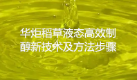 华炬科技新产品研究所技术咨询委员会科研人员现推荐一项一种稻草液态高效制醇新技术及方法步骤,该技术具有如下有益效果:该技术采取新燃能综合利用与发展理念,将现有各种类似再生能源生产的原料、技术进行全面分析、整合、优化与提高,并经过多次实验,成功将大量存在和废弃浪费的生性或干性稻草进行浸泡除碱软化粉碎细化成浆状生料后,再根据相关浆状生料水分含量和当地气温条件等情况,按重量比例加入生料醇曲和净水进行快速高效发酵,醪料发酵成熟后再投入高效节能蒸酒设备中进行蒸馏生产乙醇。因此,该技术综合技术超前、配料发酵精简、实用强易推广、稻草制生料、细化液态发酵、快捷高效蒸馏、高产优质制醇、安全节能环保,其推广使用具有重大长远的综合经济效益和社会效益,现将该一种稻草液态高效制醇新技术及方法步骤及技术方案及实施例介绍如下供研究交流参考:(211211 257438)