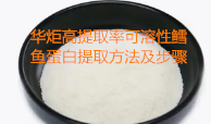 华炬科技新产品研究所技术咨询委员会科研人员现推荐一项一种高提取率可溶性鳕鱼蛋白提取方法及步骤,该技术的有益效果是:1、该技术开发了一种可溶性鳕鱼蛋白的提取方法。2、该技术是在多次反复实验的基础上得出的,确定了在pH9.0~11.0,提取温度40~60℃条件下,可获得提取率较高的可溶性鳕鱼蛋白。3、该技术提取得到鳕鱼蛋白不仅溶解性好而且可溶性蛋白提取率较高,现将该一种高提取率可溶性鳕鱼蛋白提取方法及步骤及技术方案及实施例介绍如下供研究交流参考:(341211 323425)