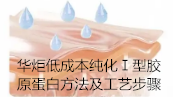 华炬科技新产品研究所技术咨询委员会科研人员现推荐一项一种低成本纯化Ⅰ型胶原蛋白方法及工艺步骤,该技术与现有技术相比较,有益效果在于:(1)该技术提供的一种纯化Ⅰ型胶原蛋白的方法,与现有技术相比,能明显缩短Ⅰ型胶原蛋白液的纯化时间,达到理想的纯化效果。该技术采用超滤纯化技术纯化胶原蛋白只需要12h~24h就可以达到所需的纯度和浓度,而采用现有技术的透析法纯化则需要1周左右的时间才能达到相同的纯度和浓度。(2)该技术提供的一种纯化Ⅰ型胶原蛋白的方法,具有方法简单,操作简便,生产成本低,并能够适用于工业化大规模应用的特点,现将该一种低成本纯化Ⅰ型胶原蛋白方法及工艺步骤及技术方案及实施例介绍如下供研究交流参考:(311211 346623)