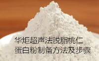 华炬科技新产品研究所技术咨询委员会科研人员现推荐一项一种超声法脱脂桃仁蛋白粉制备方法及步骤,该技术的目的在于提供一种脱脂桃仁蛋白粉的制备方法,经过脱脂处理,蛋白质含量高,能够保持桃仁主要营养成分。该技术得到的脱脂桃仁粉可用于速溶桃仁大枣晶等固体饮料的制备和其它相关产品的添加剂。该脱脂桃仁粉具有比一般食品更好的营养性,又具有桃仁所特有的增强机体免疫力和抗氧化衰老的作用,具有丰富的营养价值,还具有增强机体免疫力和抗氧化衰老的作用,可适合于各年龄段人食用。该技术与现有技术相比,具有以下优点:1、该技术采用超声辅助脱脂的方法,跟普通回流脱脂相比,更节省了脱脂时间,且脱脂率更高,为工业生产节省了生产成本。2、该技术采用喷雾干燥的方法对产品进行最后的加工,喷雾干燥同传统的干燥方法相比具有喷雾干燥的操作是连续的,其系统可以是全自动控制操作,喷雾操作具有非常大的灵活性,喷雾操作可适用于各种物料,并能最大限度的保持原料的形状和口味,因此喷雾操作更有利于工业化生产。3、该技术得到的脱脂桃仁粉用于速溶桃仁大枣晶固体饮料的制备。该固体饮料具有比一般食品更好的营养性,又具有桃仁和大枣所特有的增强机体免疫力和抗氧化衰老的作用,具有丰富的营养价值,还具有增强机体免疫力和抗氧化衰老的作用,可适合于各年龄段人食用,现将该一种超声法脱脂桃仁蛋白粉制备方法及步骤及技术方案及实施例介绍如下供研究交流参考:(241241 222606)